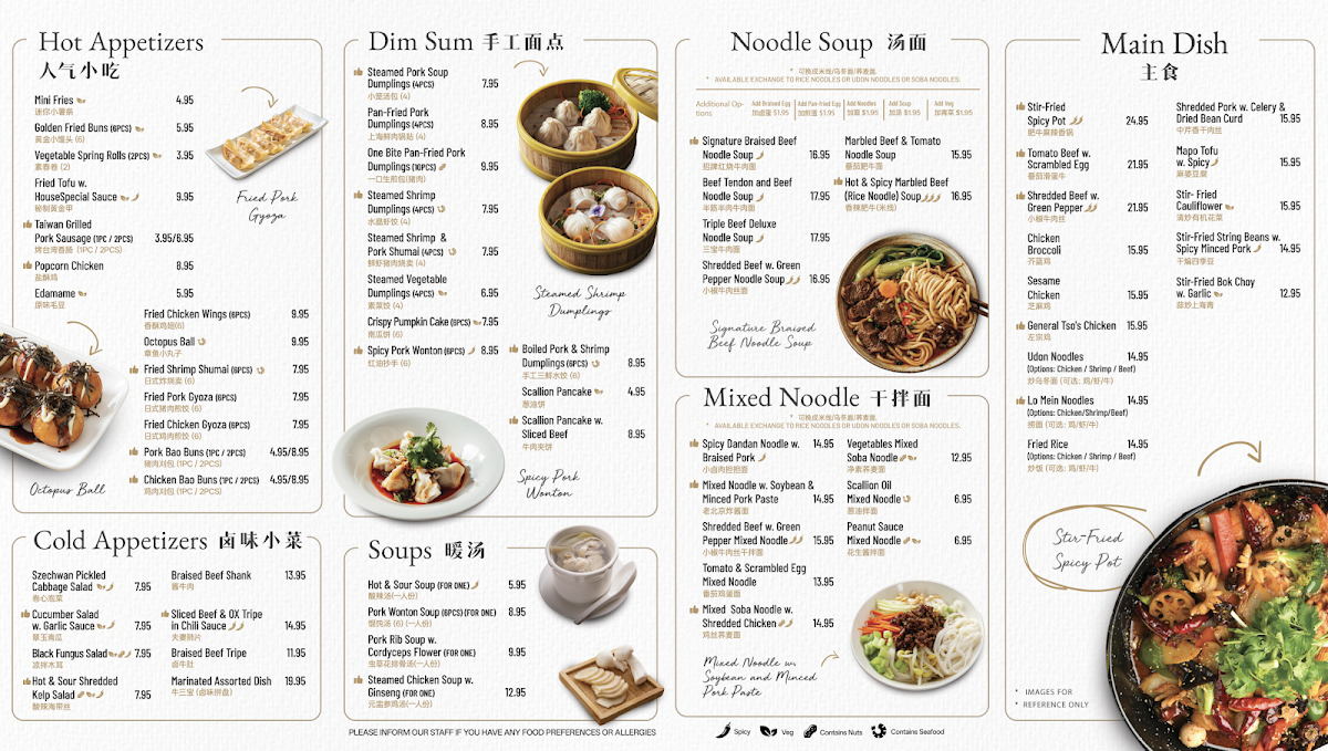 braised beef shank 牛健、braised beef tendon 牛筋、braised beef tripe 牛肚. light spicy有少辣.