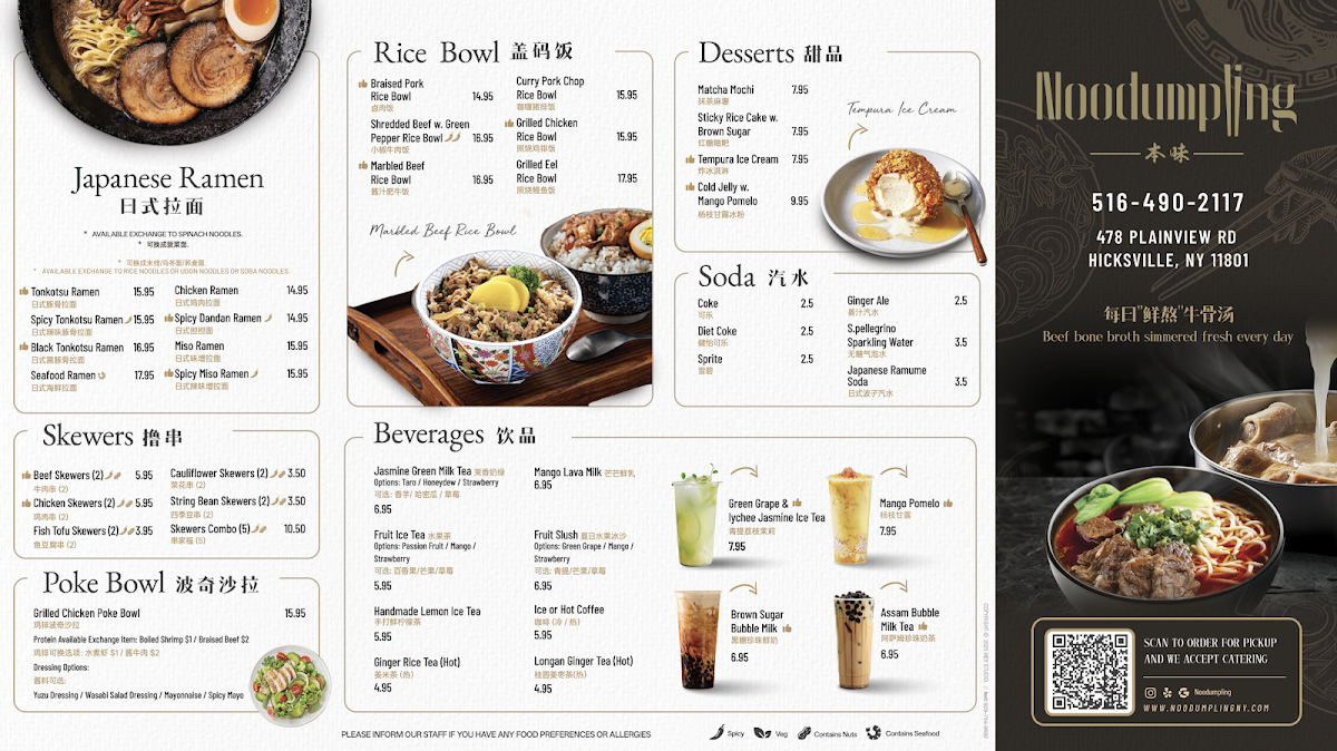 Served with: Steamed White Meat Chicken,Half Marinated Egg,Bamboo Shoot, Bean Sprout,Black Fungus, Baby Corn, Nori and Green Onion. Chicken Broth.