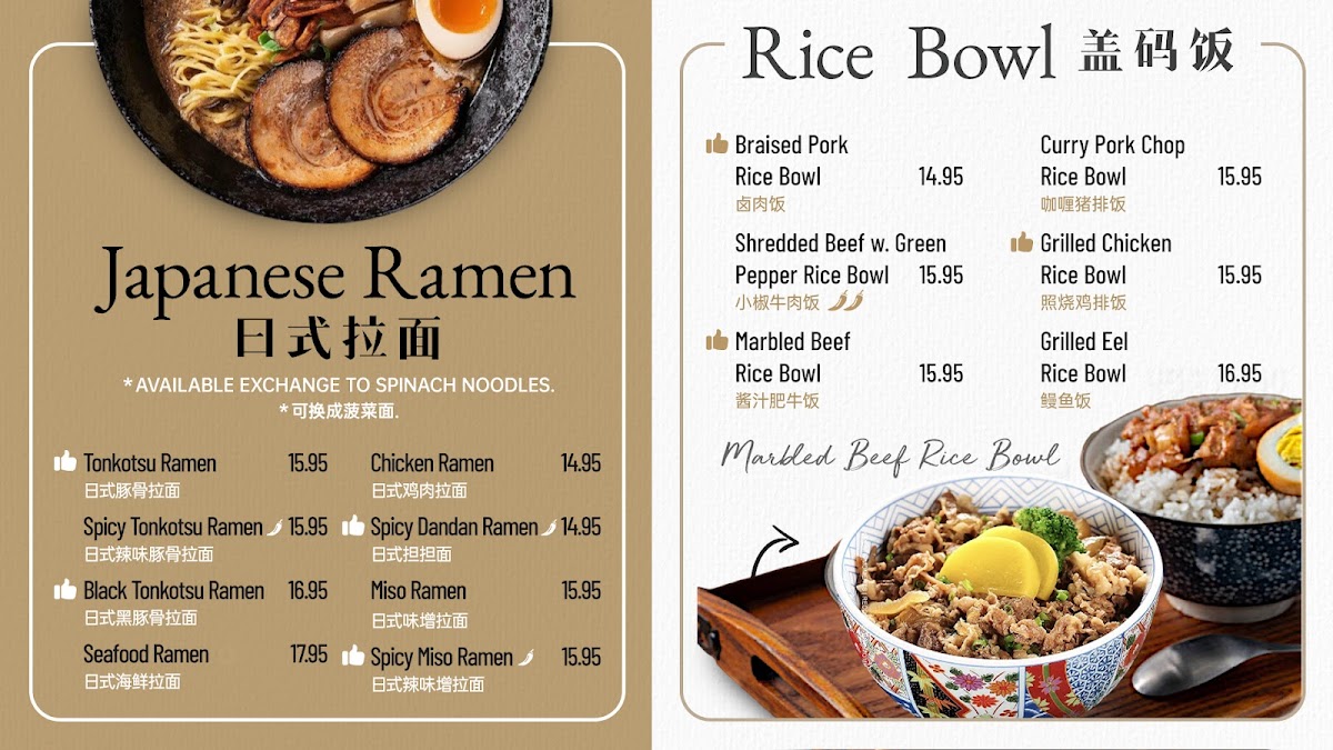 Served with: Pork Chashu,Half Marinated Egg,Bamboo Shoot, Bean Sprout,Black Fungus, Baby Corn, Nori and Green Onion. With Spicy.